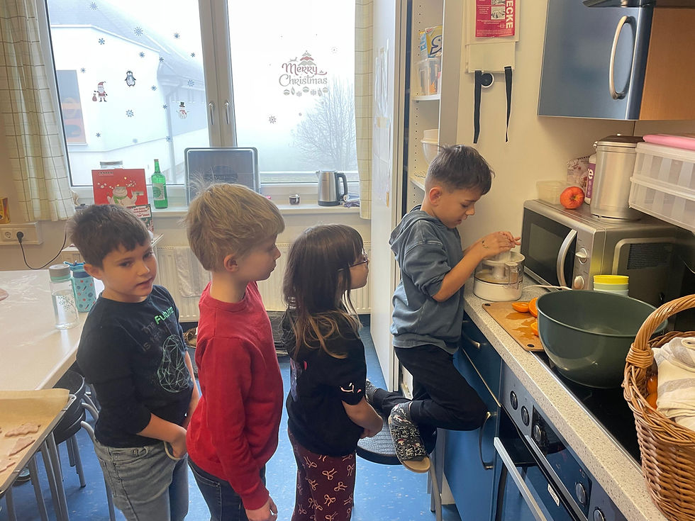 Die Vorschüler kümmerten sich gemeinsam mit Frau Schutti und Frau Hutterer um die Gestaltung des Schulchristbaumes. Viele Schülerinnen und Schüler brachten noch selbst gebastelten Schmuck und so wurde unser Baum täglich schöner. In der gesamten Weihnachtszeit duftete es herrlich im Schulhaus. Viele fleißige Bäckerinnen und Bäcker produzierten Lebkuchen für den Verkauf am Elternsprechtag. Mit den Einnahmen durch die freiwilligen Spenden, werden wir unseren Buchbestand in der neuen Schulbücherei erweitern. Danke an alle Eltern für die Unterstützung!
